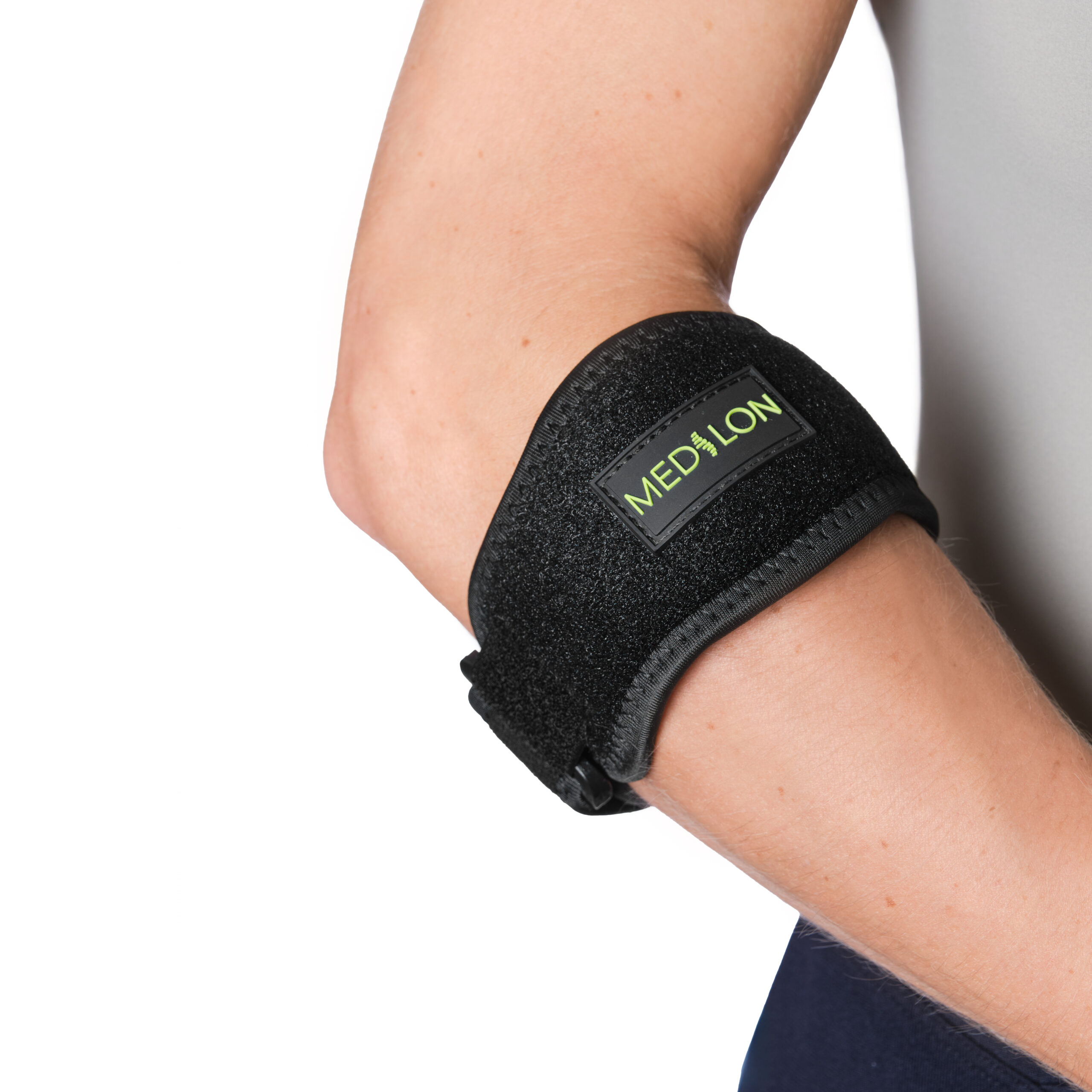 De Medilon Elleboogbrace is er in één maat, past altijd en kan zowel voor links als rechts worden gebruikt.