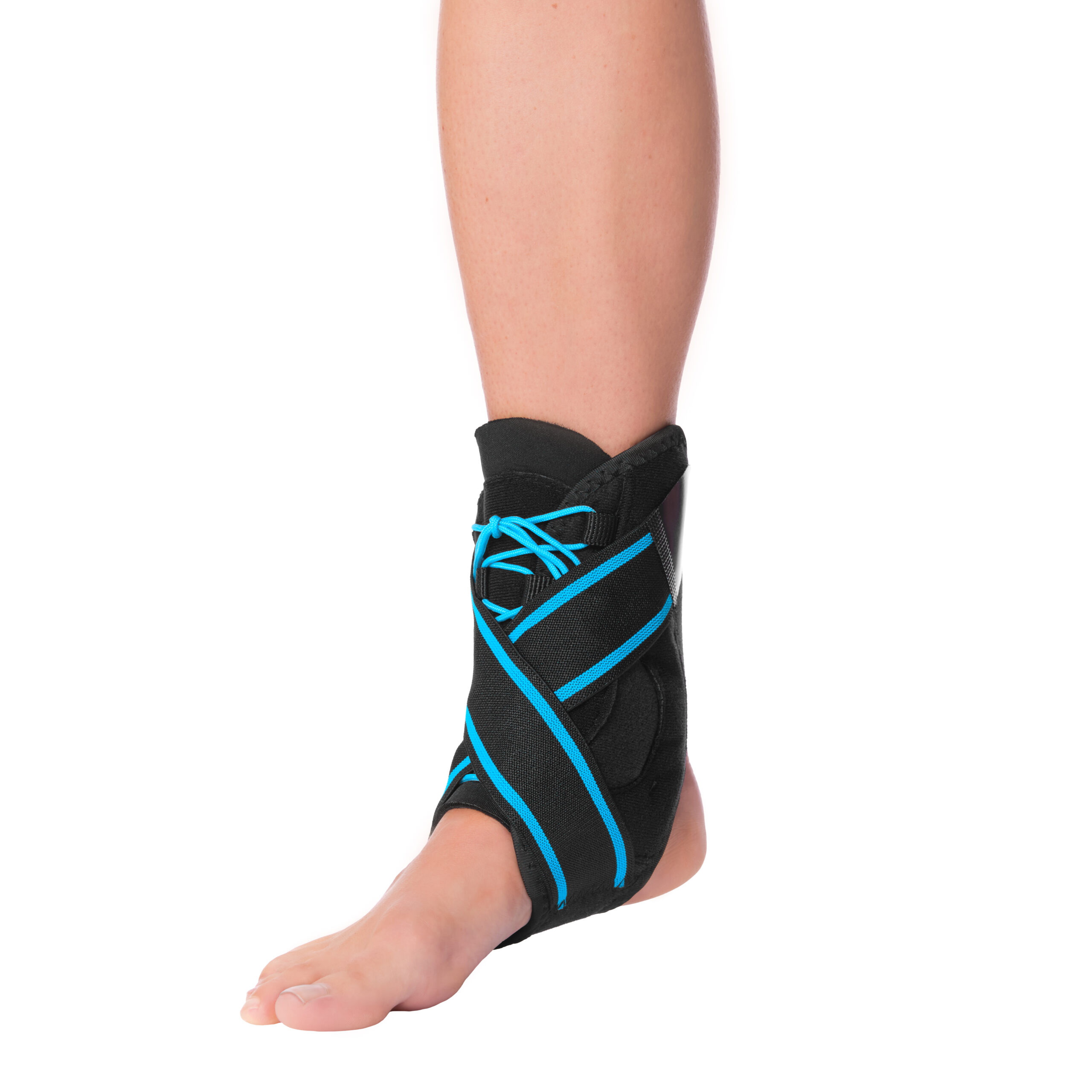 De brace is voorzien van een vetersluiting en verstelbare klittenbanden waardoor je de compressie en ondersteuning naar wens kunt afstellen. Door het lichte, ademende ontwerp en het lage profiel is hij comfortabel te dragen in vrijwel elk type schoen – of je nu loopt, sport of herstelt.