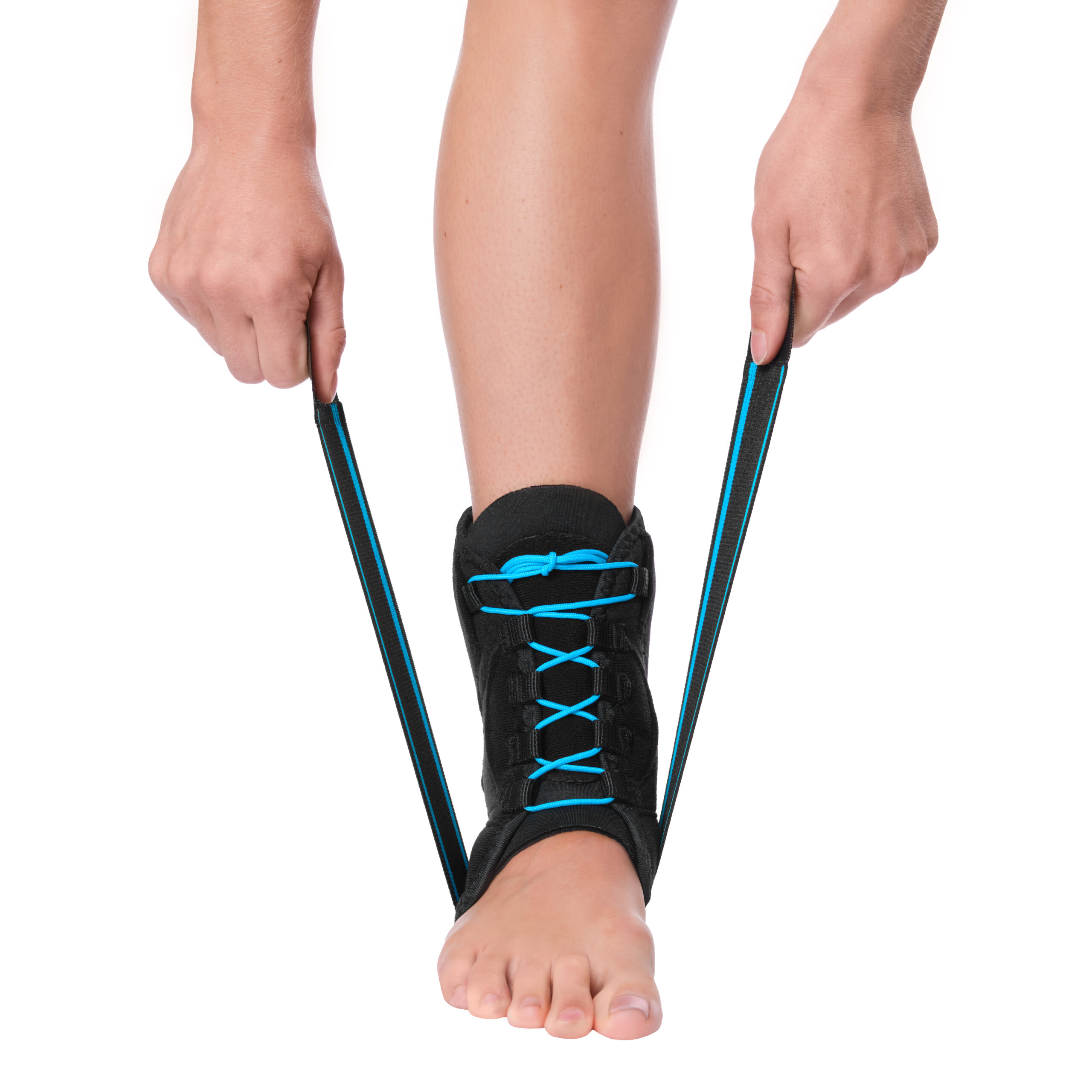 1. Plaats de brace rond de enkel zodat deze goed aansluit op het gewricht.