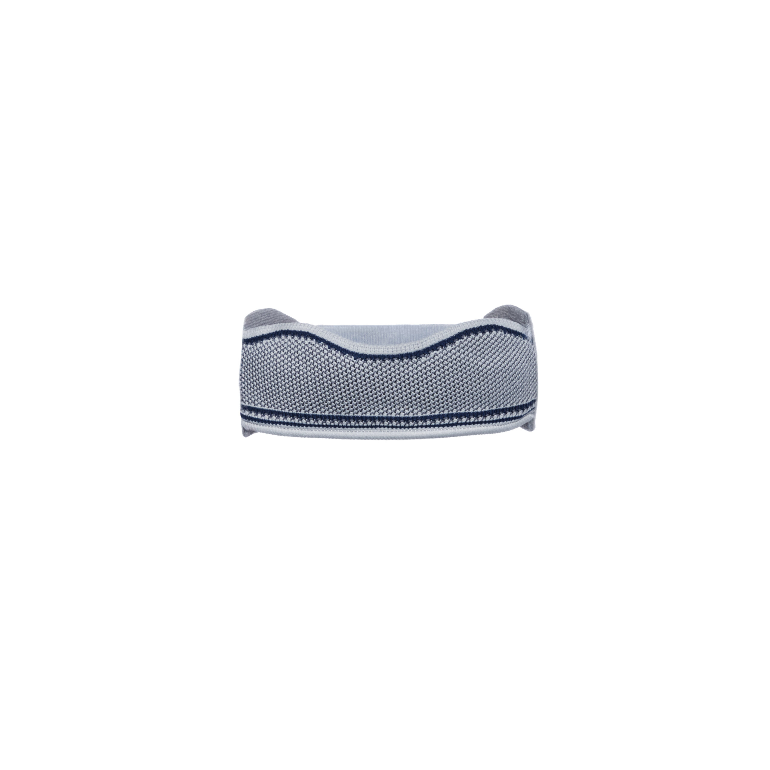 - Plaats de band rond de knie, met de gelpelotte direct onder de knieschijf. Zorg dat de uitsparing naar boven wijst richting de patella.